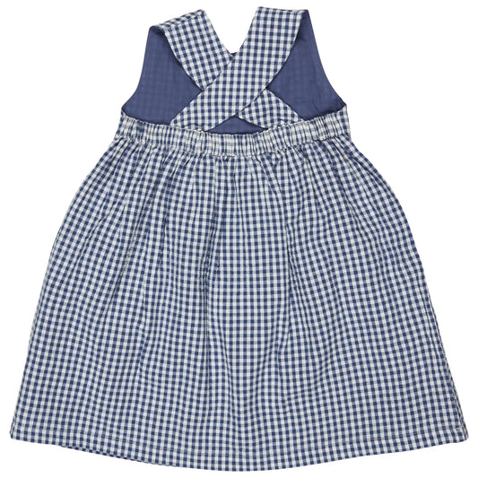 Abito con schiena incrociata (seersucker Check) - Blu Pigeon
