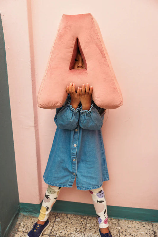 Cuscino con lettere in velluto A | Old Rose