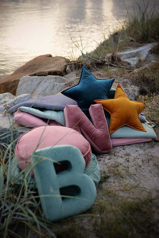 Cuscino con lettere in velluto A | Mint