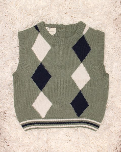 Gilet neonato rombi in pura lana merino ultrafine - Maglificio di Verona