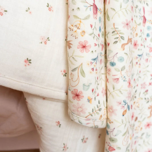 Coperta per culla in mussola leggera - Bianca - Giardino delle fate - Fiore delle fate 70x100