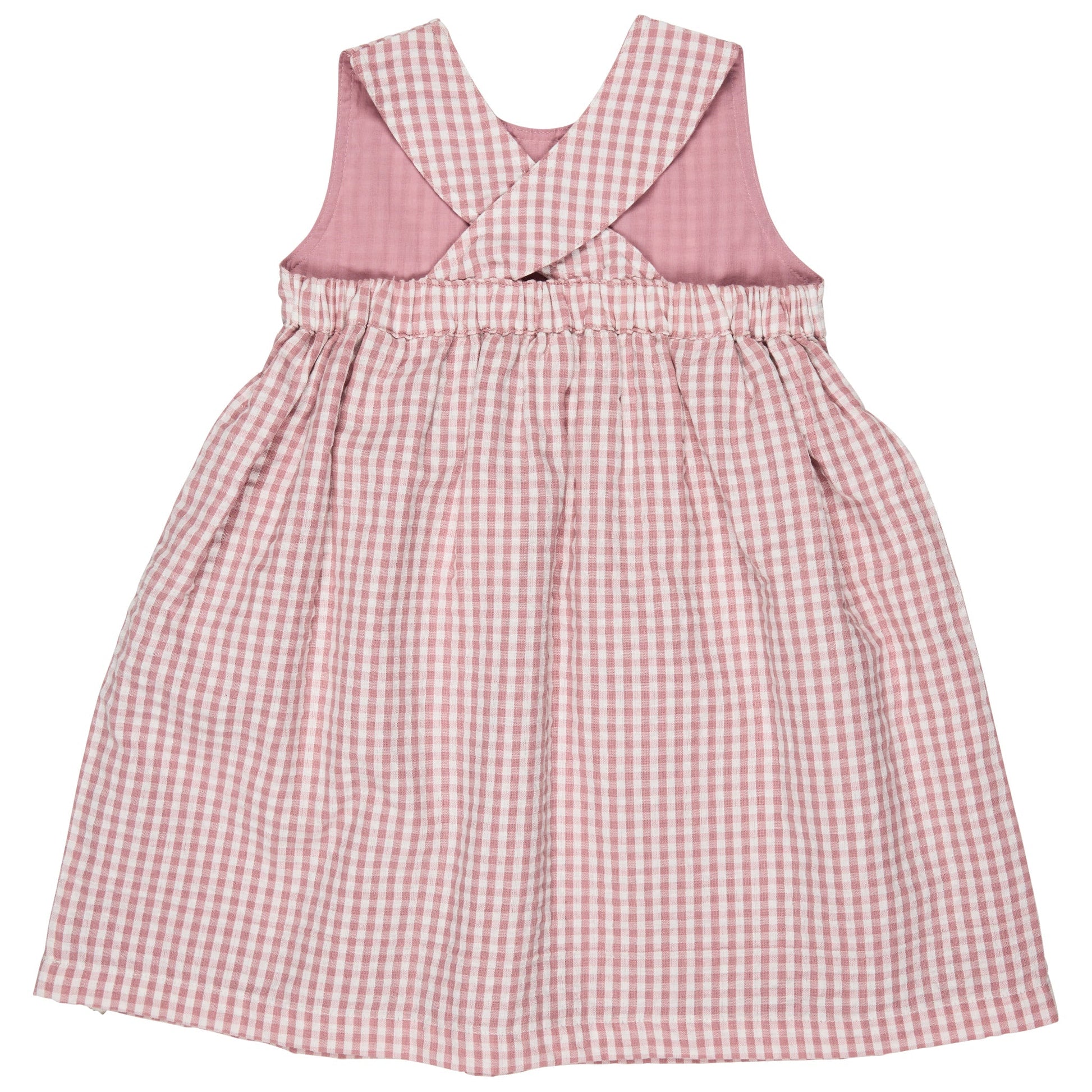 Abito con schiena incrociata (seersucker Check) - Rosa Pigeon