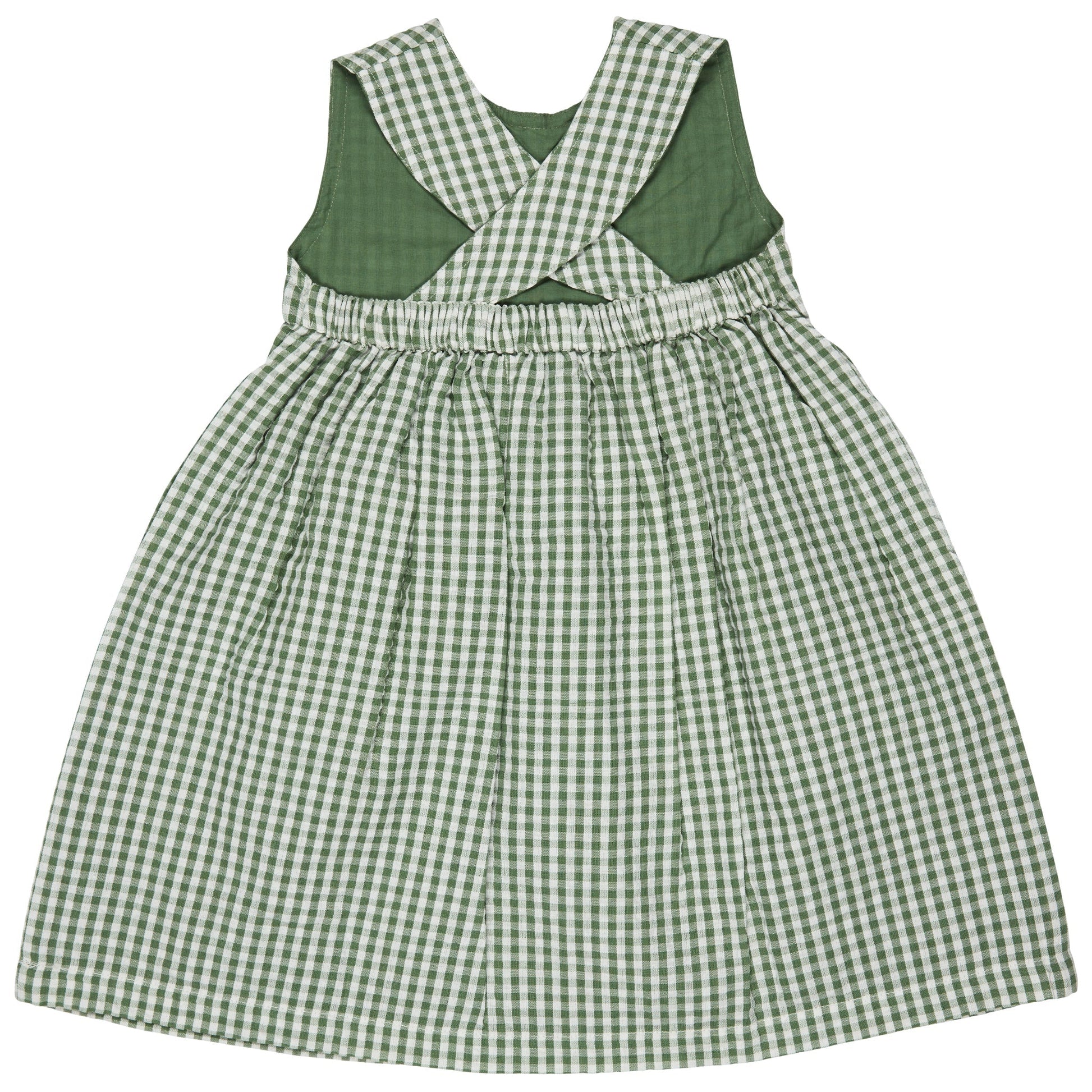 Abito con schiena incrociata (seersucker Check) - Verde Pigeon