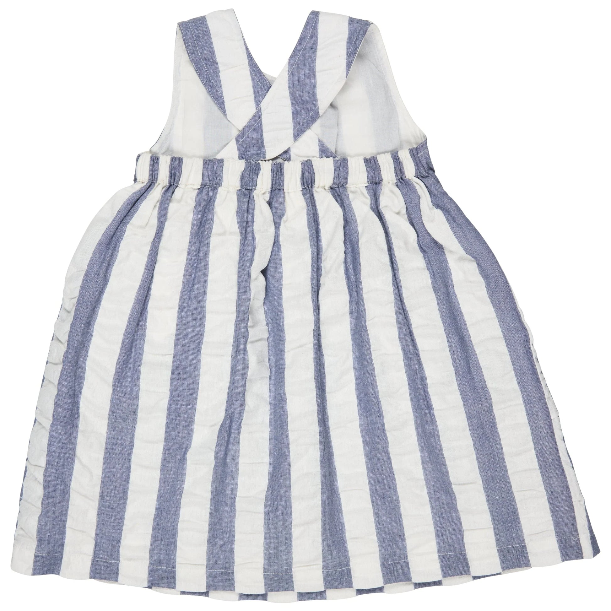 Abito con schiena incrociata (Seersucker Wide Stripe) - Indaco Pigeon