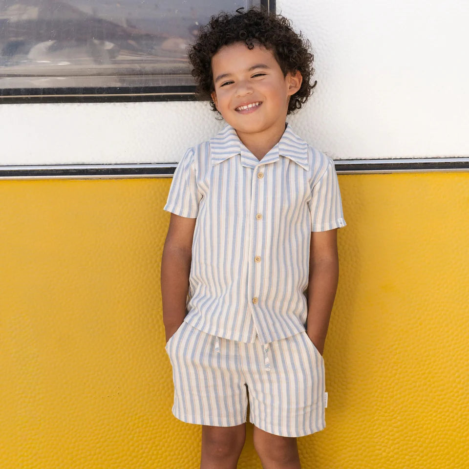 Questa ariosa camicetta a maniche corte è realizzata in morbido tessuto di mussola e strisce allegre. Il colletto e i bottoni effetto legno aggiungono un tocco giocoso. Realizzato in cotone biologico, meravigliosamente confortevole per le giornate estive. Perfetto da combinare con altri bei oggetti della collezione.