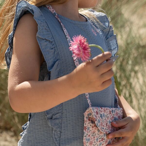 Lascia che la tua ragazza brilli in questo top estivo senza maniche in una morbida tonalità blu. Il tessuto fine stropicciato, le dolci balze e i sottili ricami lo rendono ancora più speciale. Realizzato in cotone biologico e viscosa, meravigliosamente arioso e morbido per la pelle sensibile. Perfetto per giornate di sole piene di avventura e meraviglia.
