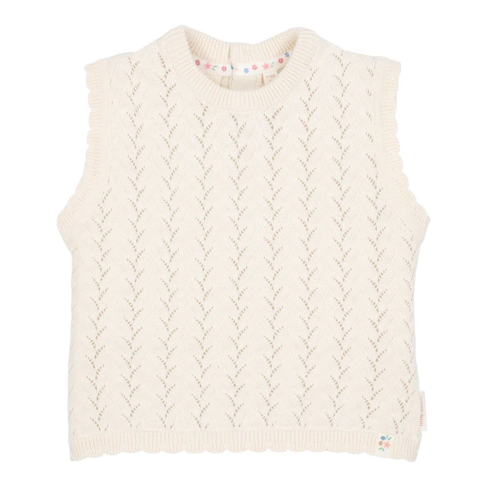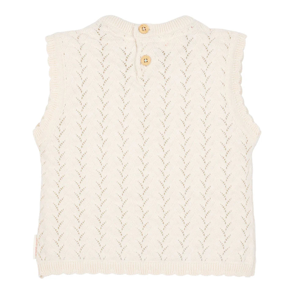 Questa morbida canotta lavorata a maglia è perfetta per le giornate estive. Il design arioso e il cotone biologico offrono una sensazione confortevole sulla pelle del tuo bambino. La struttura leggera e aperta dà un effetto giocoso e permette alla pelle di respirare. Bello da combinare con altri bei oggetti della collezione.