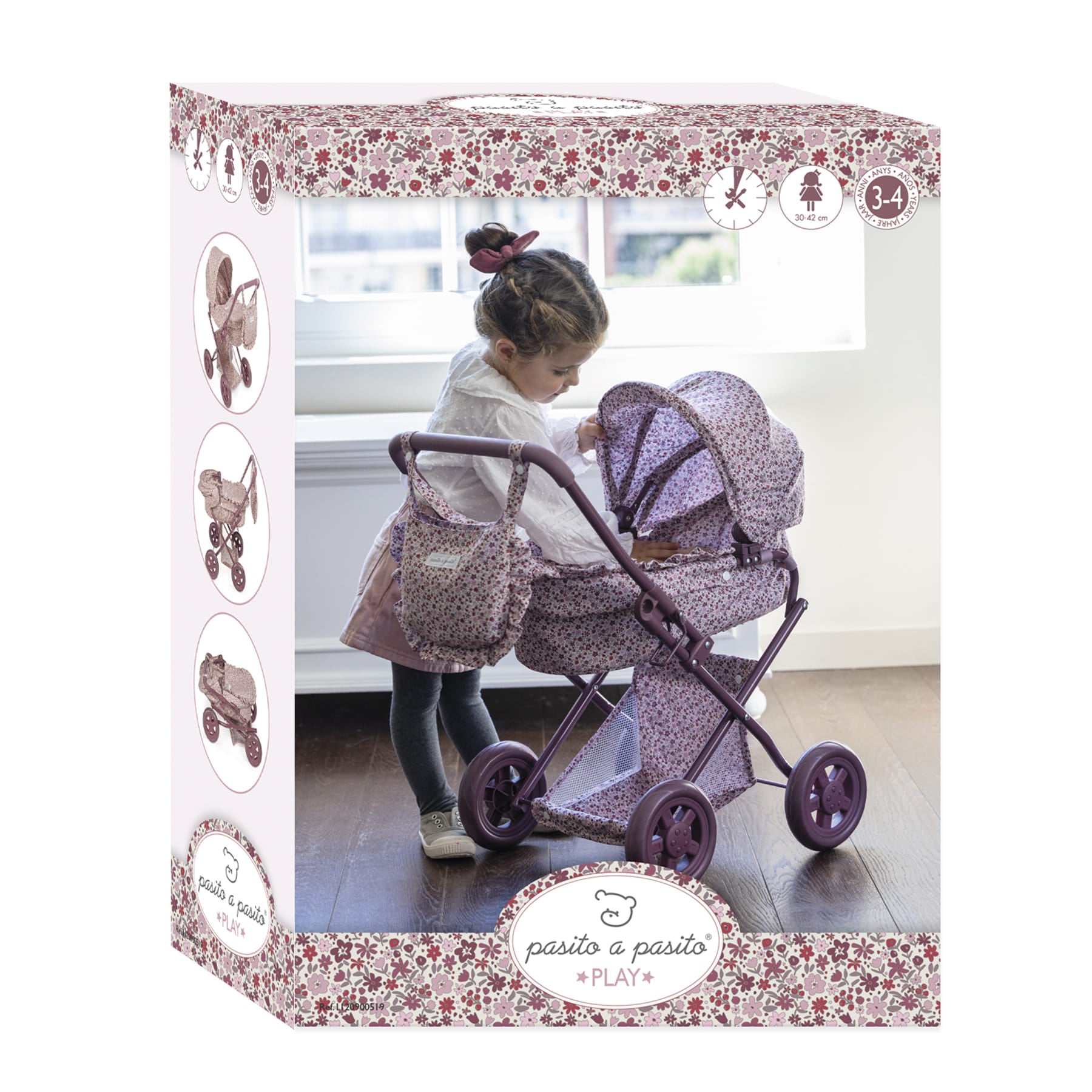 Carrozzina per bambole Pasito a Pasito Collezione Cherry – Passeggiate con stile ed eleganza! Invita il tuo bambino in un mondo di gioco e fantasia con l’adorabile Cuco pieghevole per bambole della collezione Cherry di Pasito a Pasito! Questo bellissimo passeggino è il regalo perfetto per bambini e bambine dai 3 ai 4 anni, progettato per portare a spasso le loro bambole preferite con il massimo dello stile e del comfort. Esclusiva stampa “Cherry”: il passeggino si distingue per la sua delicata e tenera stampa floreale nei toni del rosa e del rosso, caratteristica della famosa collezione Cherry di Pasito a Pasito. Un design intramontabile che dona un tocco di dolcezza a ogni passeggiata. Dettagli incantevoli: include volant e finiture impeccabili che lo fanno sembrare un vero passeggino, favorendo un gioco di imitazione più coinvolgente e divertente. Pieghevole e facile da riporre: il suo pratico sistema di chiusura permette di riporlo senza occupare spazio, ideale per case con spazio limitato o per trasportarlo comodamente in auto. Manubrio all’altezza perfetta: con un manubrio alto 61 cm, questo passeggino è progettato ergonomicamente per l’altezza dei bambini dai 3 ai 4 anni, facilitando una presa comoda e una guida semplice. Ampio spazio per le bambole: con dimensioni di 36x58x68 cm, la navicella è ideale per bambole da 30 a 42 cm, offrendo una passeggiata spaziosa e confortevole per i loro compagni di gioco. Pratico cestino inferiore: include un cestino nella parte inferiore, perfetto per trasportare gli accessori delle bambole, come biberon, vestiti o piccoli giocattoli, favorendo l’organizzazione e l’autonomia nel gioco. Borsa abbinata: un accessorio ideale che permette ai più piccoli di trasportare i loro oggetti indispensabili o gli accessori delle loro bambole, aggiungendo un tocco di realismo e divertimento al gioco. Fabbricazione di qualità: costruito con materiali resistenti e durevoli per resistere a ore di gioco attivo. Conforme alla norma europea EN-71: garantisce che il carrello è stato sottoposto a rigorosi test di sicurezza, offrendo tranquillità ai genitori.