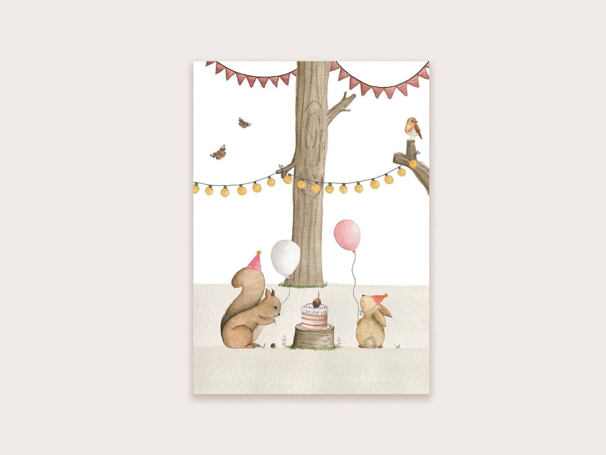 Biglietto A6 (10,5 x 14,8 cm) su carta tintoretto gesso da 350 grammi. Illustrazione realizzata con acquerello e matita.