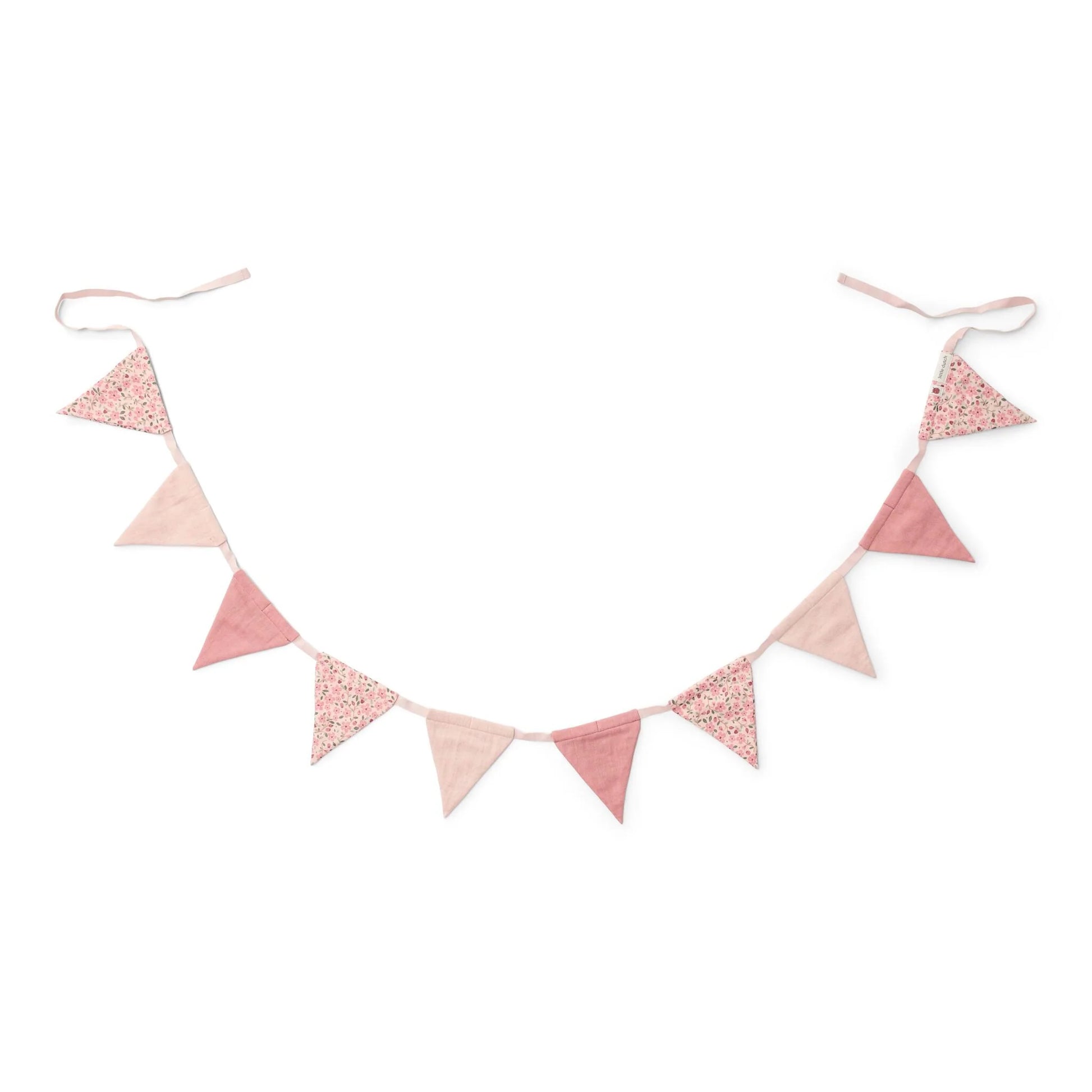 Rallegra la cameretta del tuo bambino o della tua bambina con questo splendido festone con bandierine. Chi ha detto che i festone sono solo per le feste?! Rallegrano all'istante la stanza. Sulla parete, intorno alla zanzariera, su una libreria o come decorazione per una tenda da gioco. Dai libero sfogo alla tua creatività con questo grazioso festone in tessuto dai colori tenui e con la deliziosa stampa "Fairy Floral".