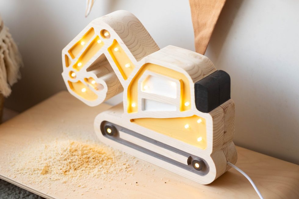 Qualità e cura dei dettagli della mia lampada a forma di Escavatore Le mie lampade non solo semplici luci, ma autentiche opere d’arte destinate a diventare parte integrante dell’infanzia e a custodire preziosi ricordi per le generazioni future.