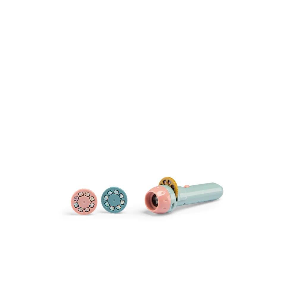 Torcia dove ognuno dei dischi proiettati sulla parete racconta una storia a colori senza parole basato sulla collezione La piccola scuola di danza. Un momento magico per sviluppare la fantasia e l’immaginazione dei bambini. Le Storie: Nascondino / Ballando con i cigni / Il balletto magico. Funziona con 3 batterie a bottone (incluse) (1,5V AG13/LR44). Facile da usare: Rimuovere la linguetta protettiva dal vano batterie. Inserire il disco nell'apposita fessura, spostando il coperchio verso il basso. Accendere la torcia e ruotare la ghiera per mettere a fuoco l'immagine. Ruotare la ghiera per proiettare le immagini successive.Dimensioni: 16 x 4 cm.