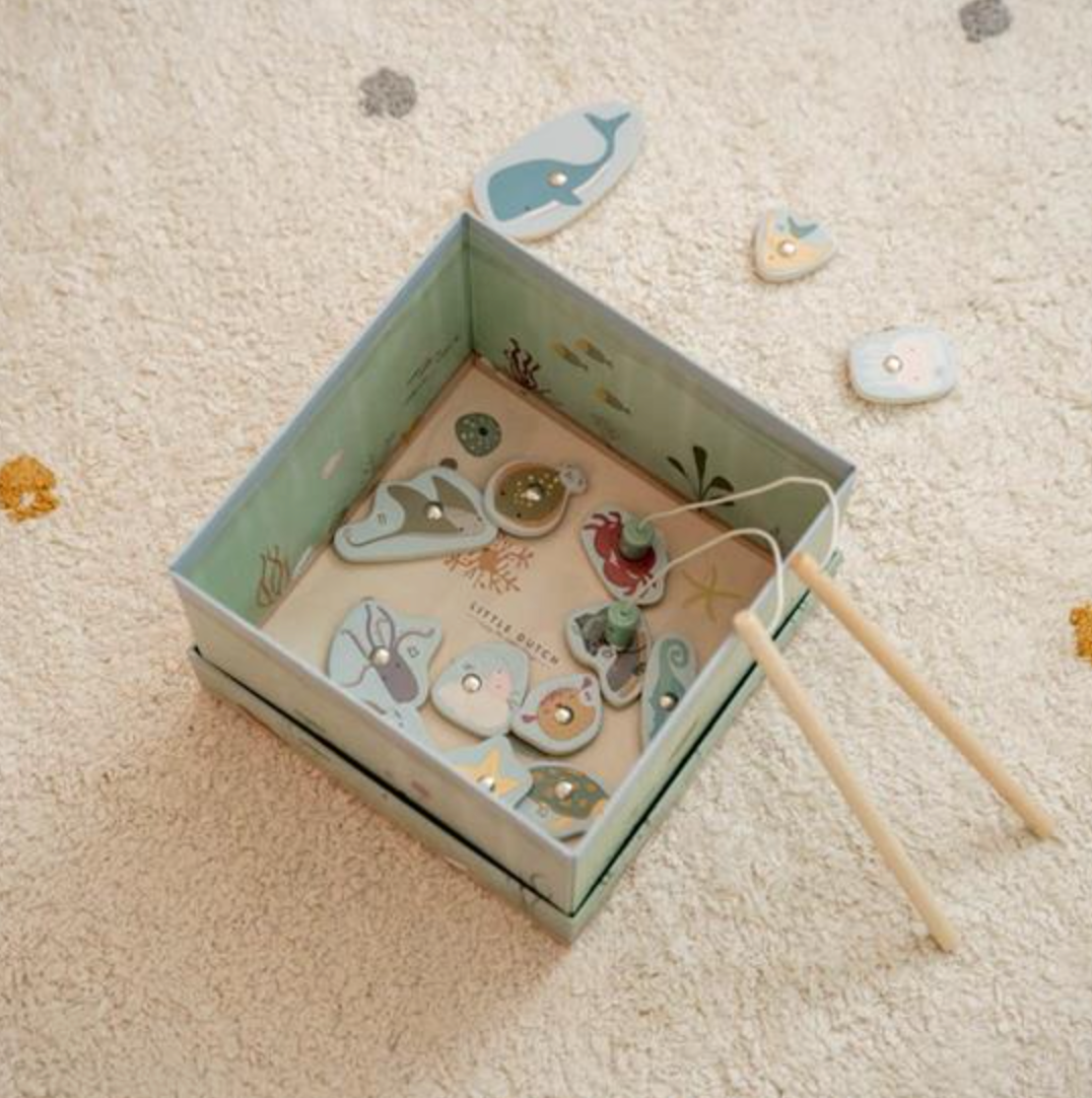 Prova a catturare tutti gli animali marini con questo divertente gioco di pesca di Little Dutch. Assicurati solo di non avvolgere il vecchio stivale! Questo classico gioco di pesca stimola le capacità motorie e la concentrazione dei bambini. Inoltre, il livello di difficoltà può essere regolato in base all'età e alle abilità dei giocatori. Ciò garantirà il divertimento sia per i bambini più piccoli che per quelli più grandi. Gli animali sottomarini sono fatti di legno e l'acquario è fatto di cartone.