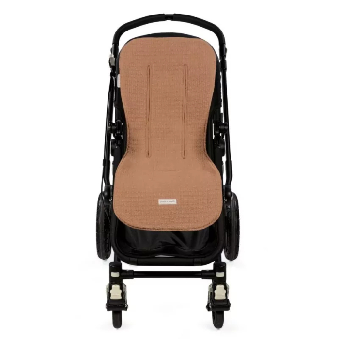 Il rivestimento del seggiolino Icon di Pasito a Pasito, realizzato in tessuto garzato di cotone 100%, è il rivestimento ideale che si adatta alla maggior parte dei passeggini, offrendo maggiore comfort al tuo bambino durante le giornate calde.