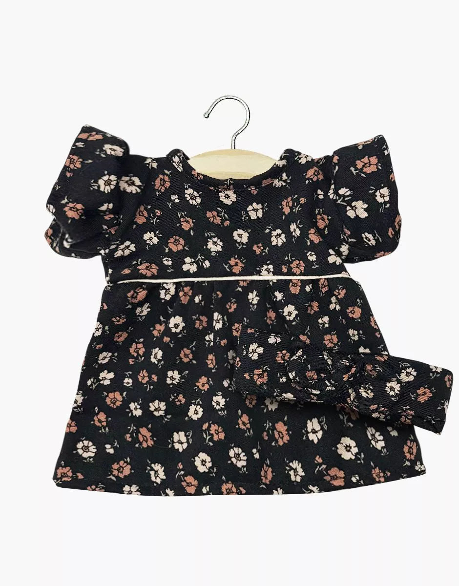 Minikane Rylee+Cru | Abito Daisy e fascia per capelli Capucine con nodo rotondo e profili ecru