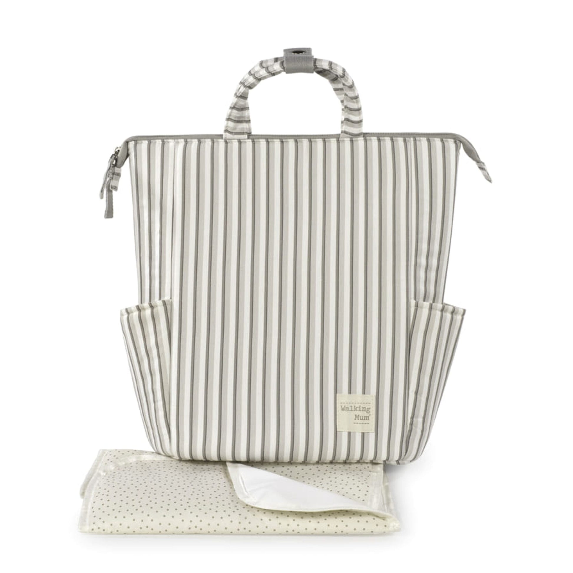 Mochila Botton Raya di Walking Mum è una borsa convertibile ideale sia come maternità canastilla che come zaino da passeggio. Con il suo design a righe sobrie, materiali di alta qualità e una capienza organizzata, è perfetta per mamme e papà moderni che apprezzano eleganza e praticità
