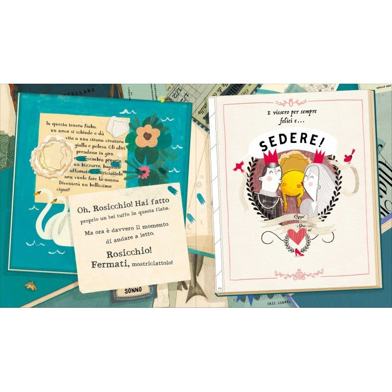 È l’ora della nanna! Ma dov’è finito Rosicchio? Si sta facendo strada a morsi tra le favole della buonanotte! Torna qui, Rosicchio! È il momento che i mostriciattoli come te vadano subito a letto! Guarda attraverso le pagine forate del libro e segui Rosicchio nel suo viaggio tra le favole della buonanotte!