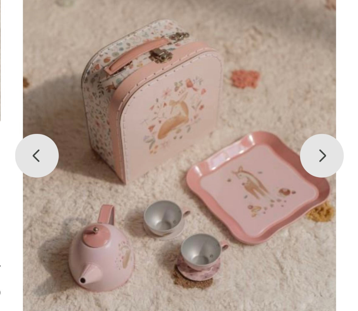 Vogliamo prendere il tè? Il tuo bambino si divertirà per ore a giocare di ruolo con questo grazioso piccolo set da tè in latta. Questo set da tè Fairy Garden stimola l'immaginazione dei bambini e incoraggia le capacità motorie fini. Il set include quattro piccole tazze da tè, quattro piattini, quattro piattini per dolci e una teiera con coperchio. Nota: asciugare bene il set da tè dopo l'uso. Confezionato in una scatola con finestra. Adatto a bambini dai 36 mesi.