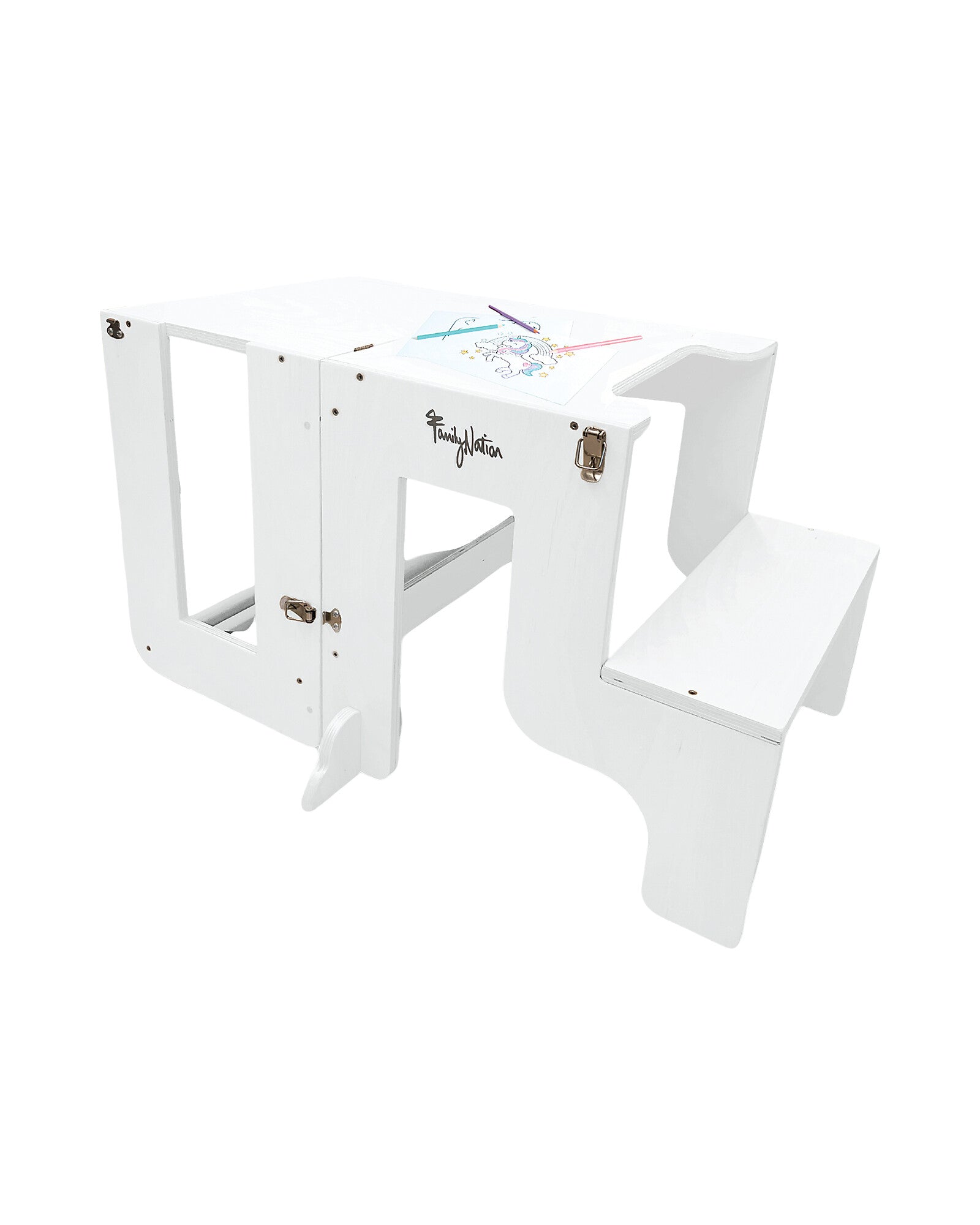 Torre Montessoriana in legno 2 in 1 - bianca - Convertibile in Tavolo+Sedia - Autonomia e Sicurezza