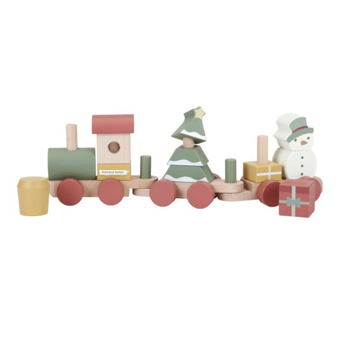 Tutti a bordo del treno di Natale! Aiuterai a portare i regali a bordo? Il pupazzo di neve è già entrato nel treno. Usa le diverse forme di blocchi di costruzione per costruire un albero di Natale nel carro. Questo treno impilabile migliorerà la coordinazione occhio-mano del tuo piccolo e stimolerà le sue capacità motorie. Il regalo perfetto per sotto l'albero di Natale e per giocare durante le vacanze.